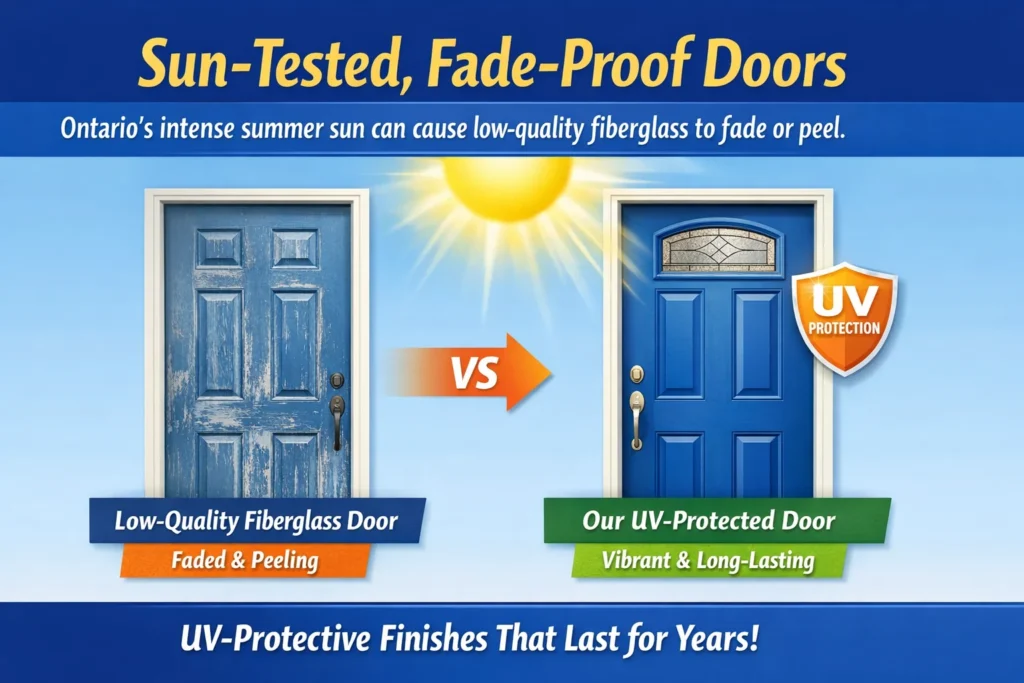While fiberglass is inherently durable, many imported models lack the internal structural reinforcement needed to survive a Canadian winter. At aeo-services, we install only Canadian-made fiberglass doors and components.
