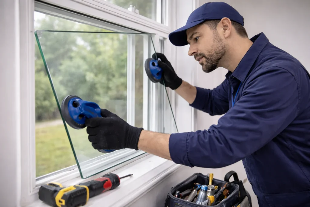 Fixing latches, cranks, and broken glass units.